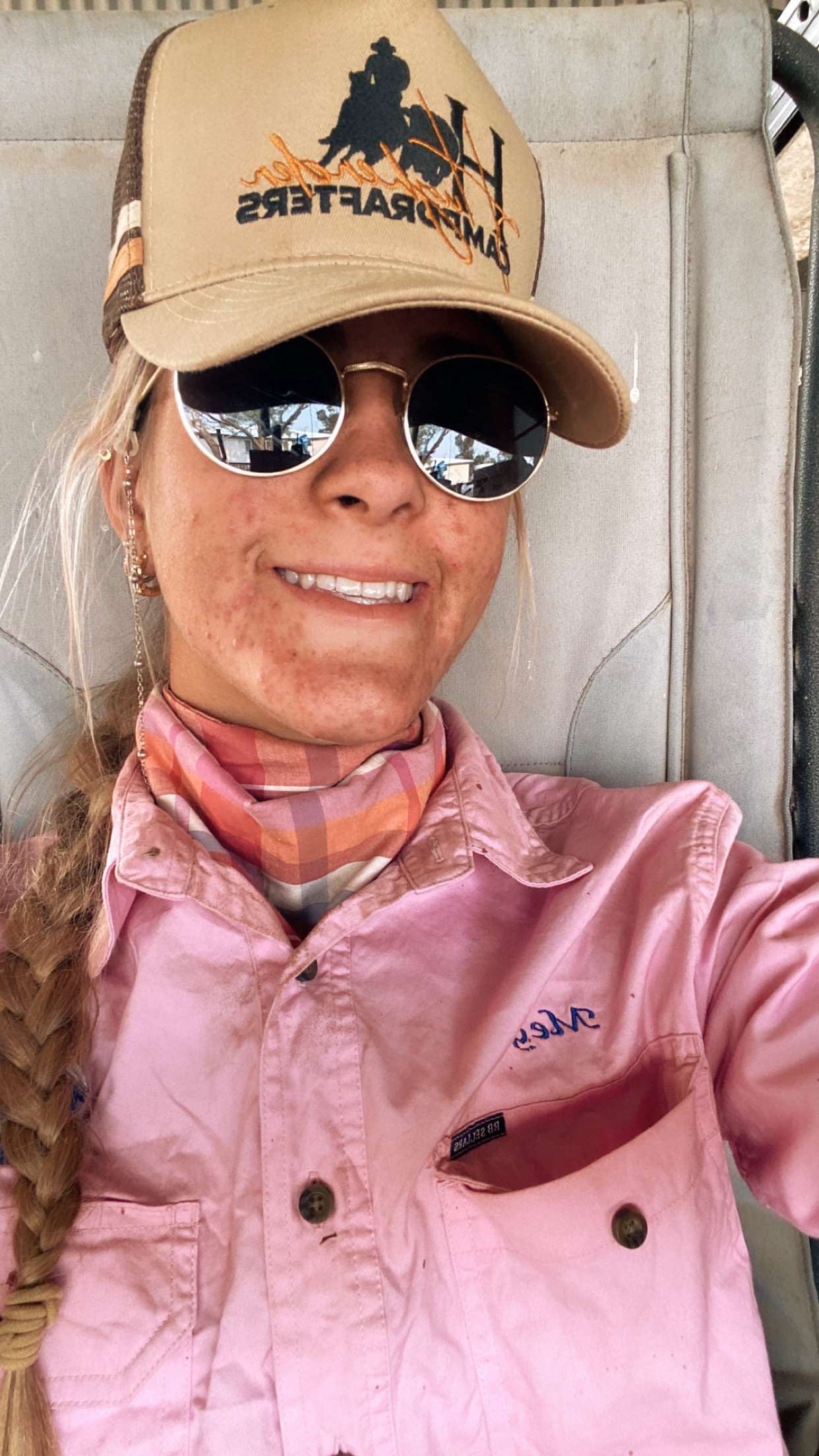 Meet Meg! she is wearing our best seller neck scarf, the Pink Check!